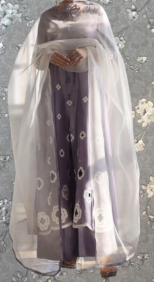 Lavender Embellished Pakistani Dress with Floral Dupatta – Model PR-0267