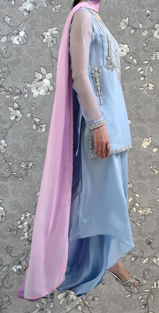 Light Blue Embroidered Dress with Dupatta – Elegant Designer Wear Pink Tulip PR-0310