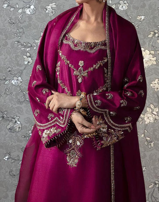 Luxurious Magenta Floral Embroidered Tunic & Pant Set with Dupatta – Pink Tulip PR-0298
