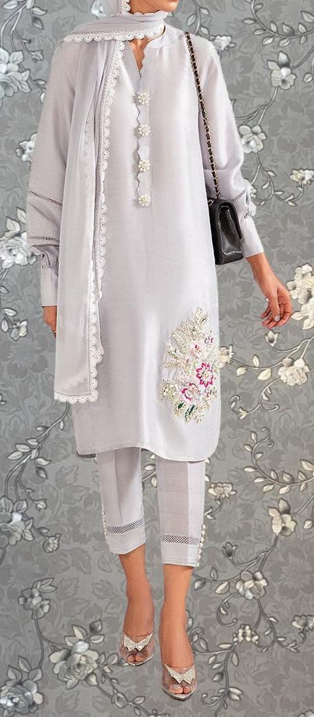 Lavender Embroidered Pakistani Suit with Lace Dupatta | Pink Tulip – PR-0348