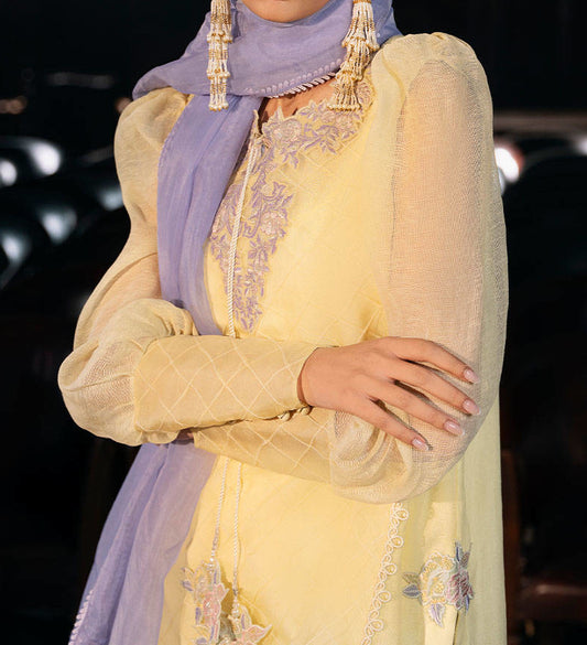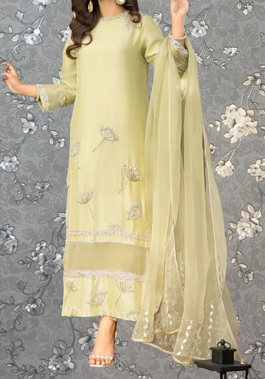 Lemon Yellow Formal Embroidered Shirt & Dupatta Set | Pakistani Style Outfit | Pink Tulip PR-0320