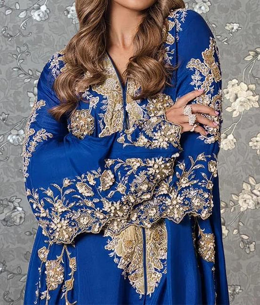 Luxury Royal Blue Embroidered Silk 3-Piece Suit | Pink Tulip Designer Eid & Wedding Outfit PR-0207