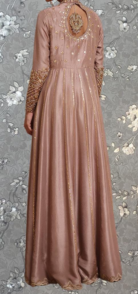 Maroon & Gold Silk Long Dress with Banarsi Dupatta – Pink Tulip PR-0251