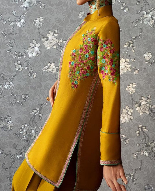 Mustard Embroidered Jacket Style Co-Ord Set with Pouch | Formal Pakistani Outfit by Pink Tulip – PR-0344