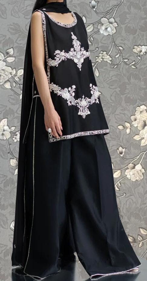 Black Sleeveless Embroidered Suit with Dupatta – Pakistani 3-Piece Formal Set | Pink Tulip PR-0176