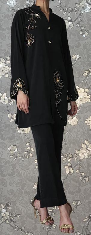 Black Floral Embroidered Co-Ord Set | 2-Piece Elegant Modest Suit Pink Tulip PR-0360