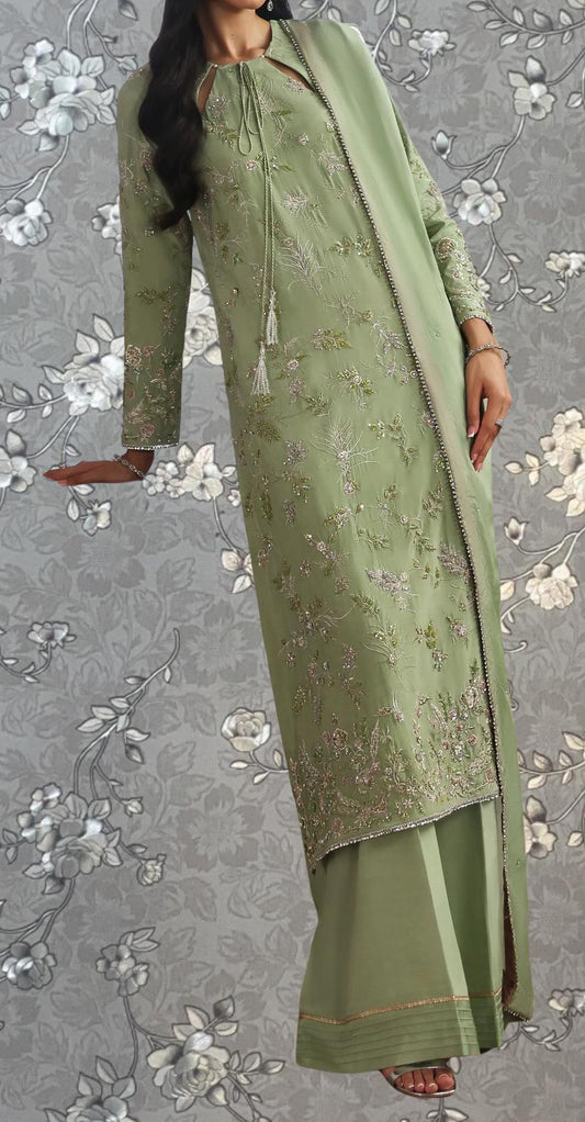 Pastel Green Embroidered Kurta Set with Dupatta | by Pink Tulip PR-0369