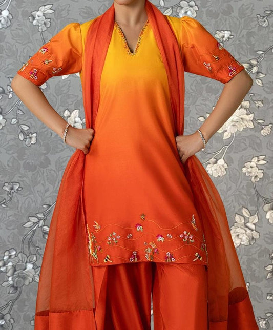 Orange Ombre Embellished Pakistani Dress with Chiffon Dupatta – Model PR-0264