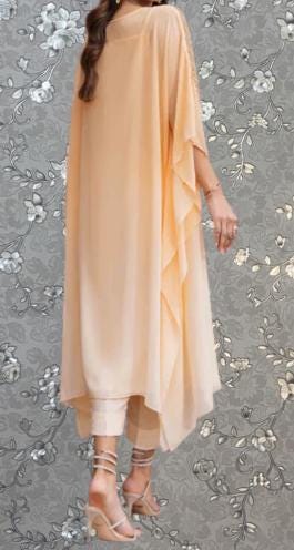 Peach Kaftan Style Chiffon Dress with Sequin Embellishment | Formal Pakistani Outfit by Pink Tulip – PR-0376
