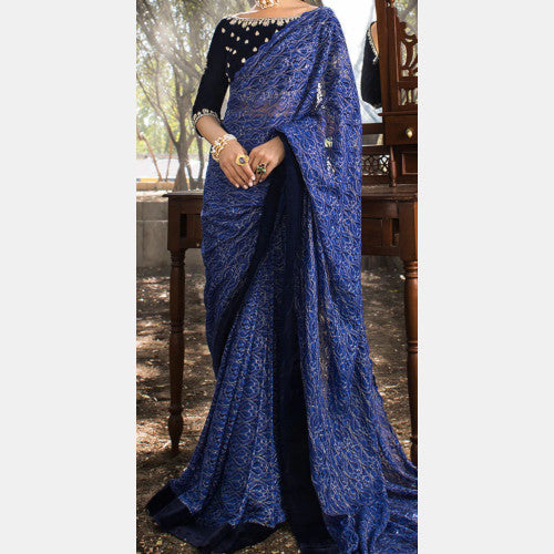 Pink Tulip Studio Pakistani Indian Designer Wear Navy Blue Saree- PR 1076