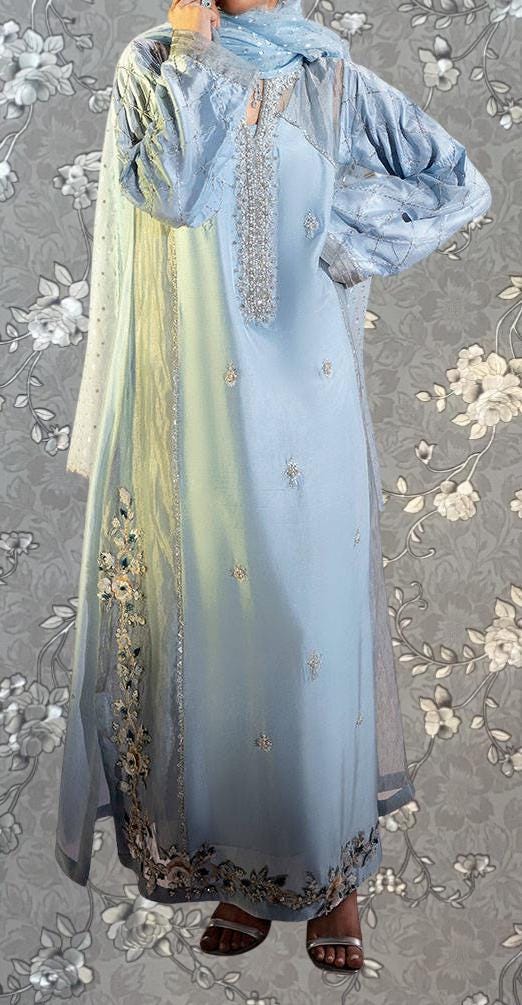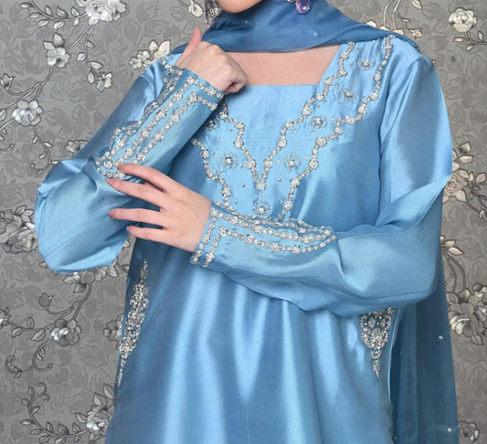 Blue Embroidered Dress with Dupatta | Elegant Eid Outfit Pink Tulip PR-0274