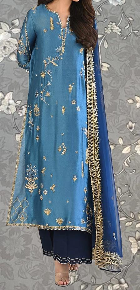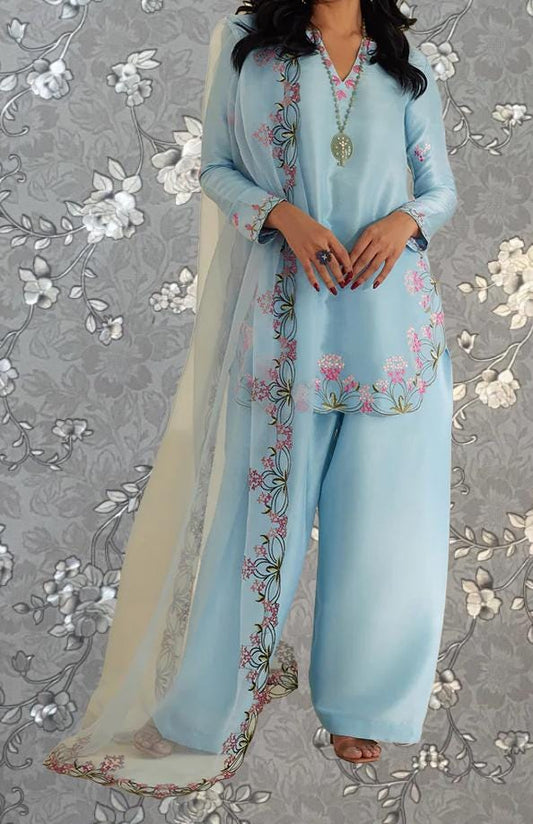 Blue Embroidered Outfit with Dupatta – Elegant Formal Wear for Women Pink Tulip PR-0219