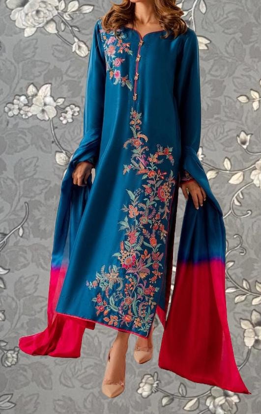 Blue Embroidered Pakistani Suit with Ombre Dupatta | Festive Ethnic Dress by Pink Tulip – PR-0388
