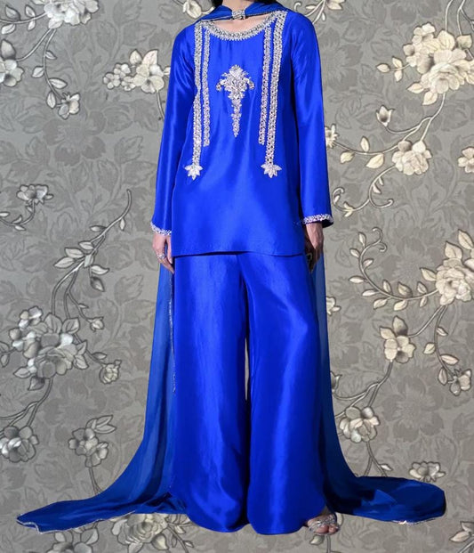 Blue Embroidered Dress with Pants & Pouch – Designer Formal Wear Pink Tulip PR-0308