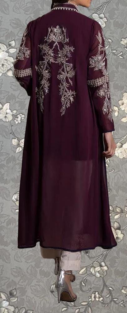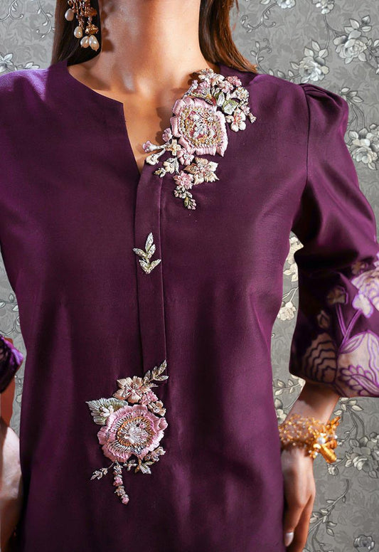 Plum Long Embroidered Formal Shirt | Pink Tulip Designer Pakistani Eid & Wedding Outfit PR-0209