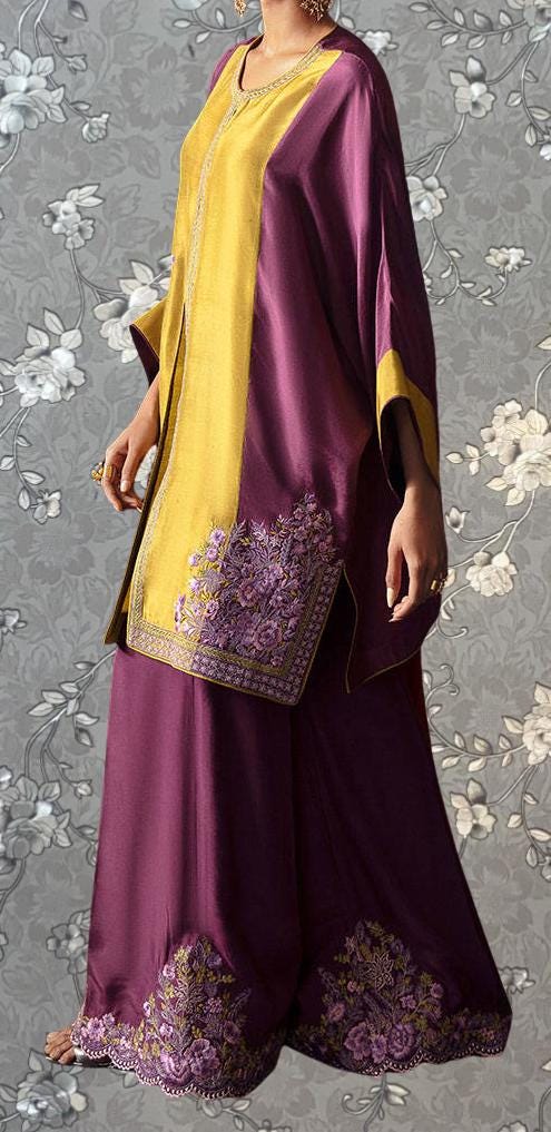 Purple & Mustard Embroidered Kaftan Style Set | Festive Pakistani Outfit by Pink Tulip - PR-0343