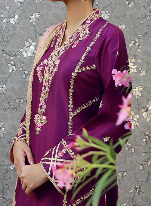 Plum Blossom Embroidered Formal Dress – 3 Piece Designer Outfit by Pink Tulip PR-0329