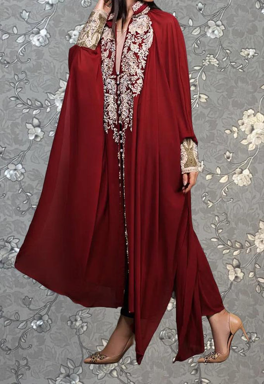 Red Embroidered Kimono with Intricate Floral Detailing | Luxurious Traditional Attire by Pink Tulip PR-0235