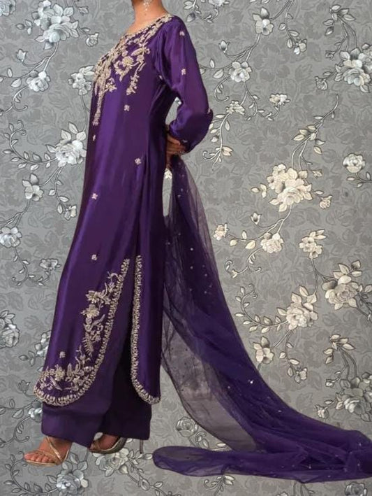 Purple Embroidered Dress with Dupatta | Elegant & Stylish by Pink Tulip | Model PR-0289