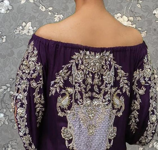 Purple Embroidered Off-Shoulder Kaftan | Pink Tulip Designer Eid & Wedding Outfit PR-0208