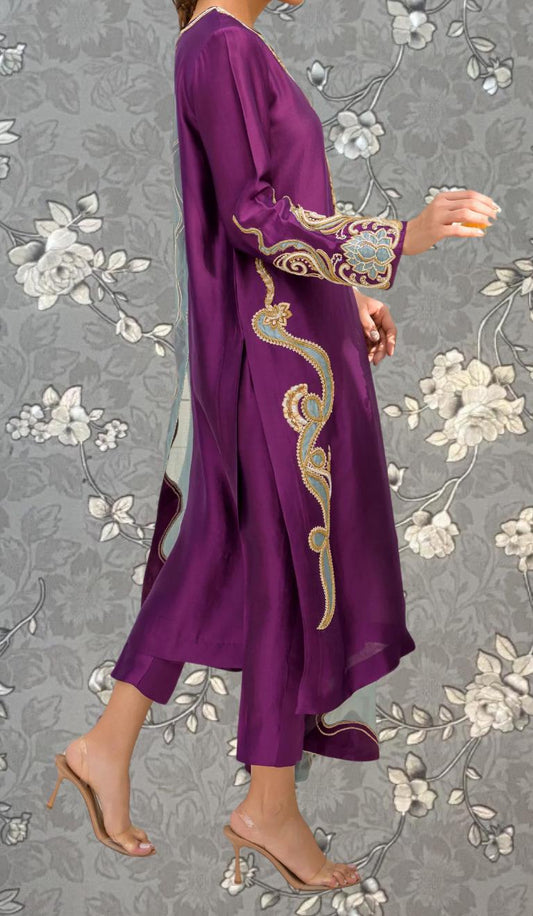 Purple Embroidered Dress with Dupatta – Luxury Formal Wear Pink Tulip PR-0303