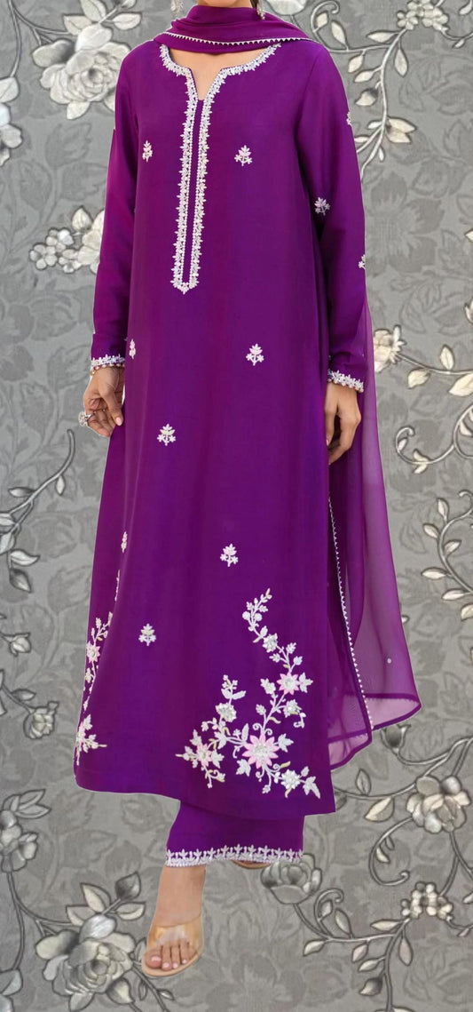 Purple Floral Embroidered Dress with Dupatta Elegant and Stylish by Pink Tulip | Model PR-0280