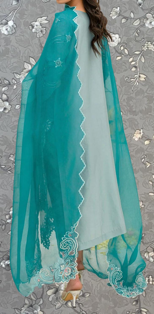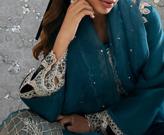 Teal Embroidered Outfit with Dupatta – Elegant Formal Wear for Women Pink Tulip PR-0218