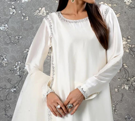 White Embroidered Dress with Dupatta – Elegant Designer Wear Pink Tulip PR-0311