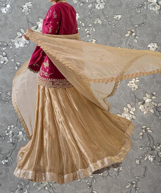 Wine & Gold Embroidered Bridal Lehenga Set | Formal Pakistani Dress | Pink Tulip PR-0322