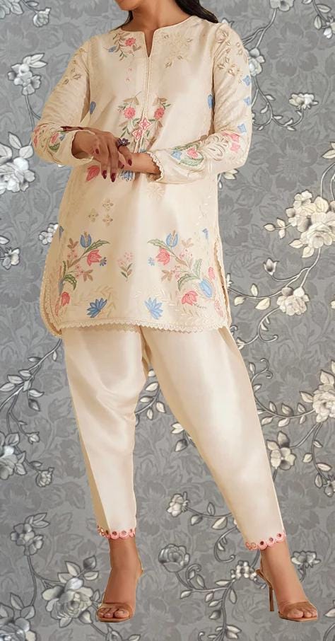 White Floral Embroidered Kurta Set | Elegant Pakistani Casual Wear by Pink Tulip PR-0216
