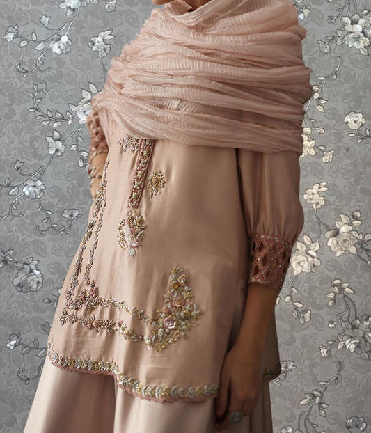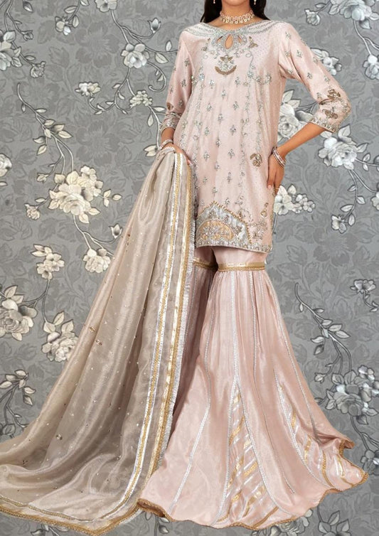 Blush Pink Embroidered Silk Gharara Outfit – Pink Tulip Designer Formal Wear PR-0182