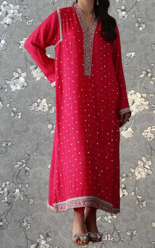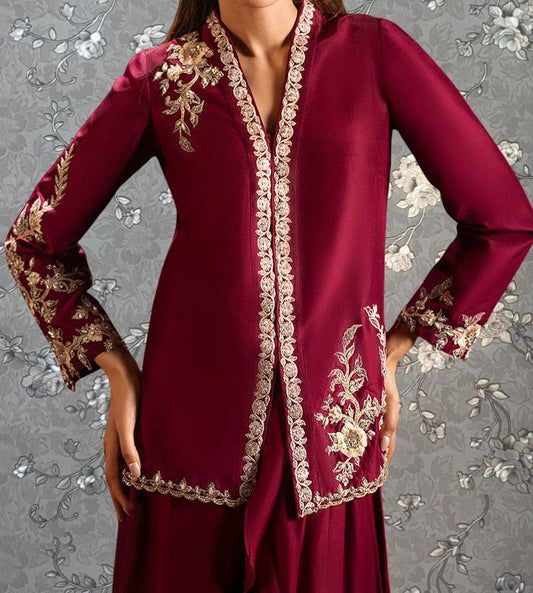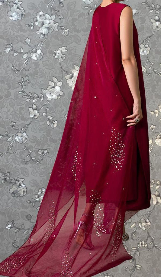 Burgundy Embellished Pakistani Dress with Chiffon Dupatta – Model PR-0266