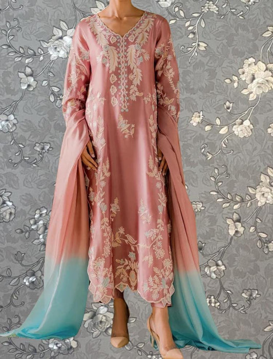 Blush Pink Embroidered Dress with Ombre Dupatta | Elegant Formal Wear Pink Tulip PR-0366