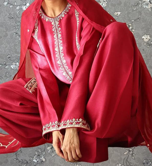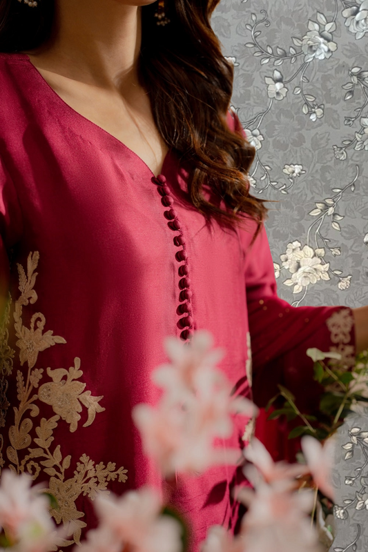 Deep Ruby Embroidered Pakistani Salwar Kameez Suit – Pink Tulip PR-0355