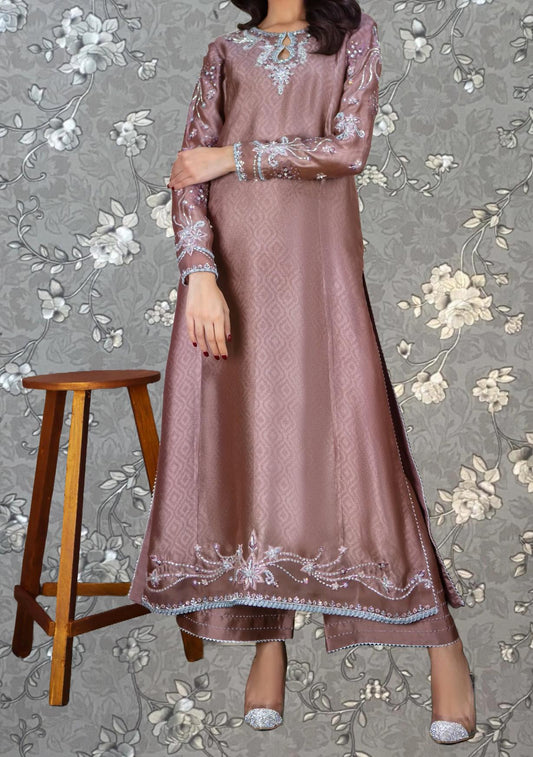 Dusty Mauve Embroidered Formal Silk 3-Piece Pakistani Suit | Eid & Wedding Wear Pink Tulip PR-0158