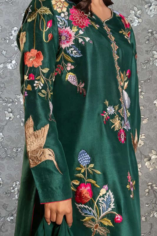 Emerald Green Embroidered Formal Suit – 3-Piece Modest Ensemble by Pink Tulip PR-0333