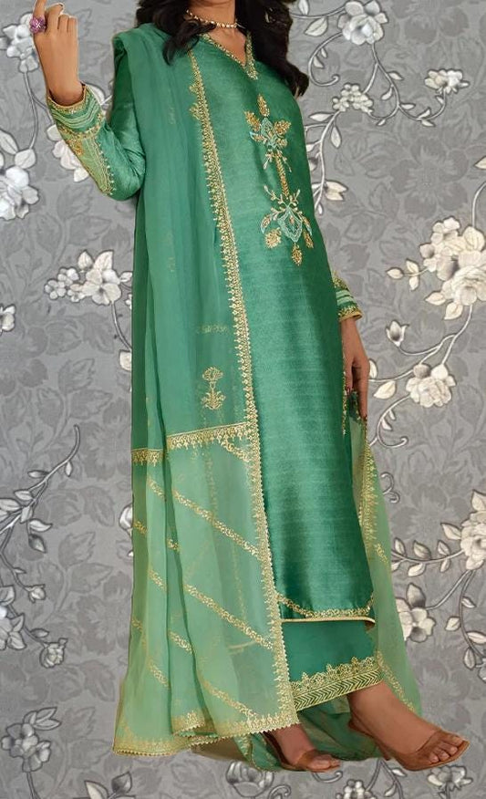 Emerald Green Embroidered Long Dress with Dupatta Pink Tulip – PR-0270